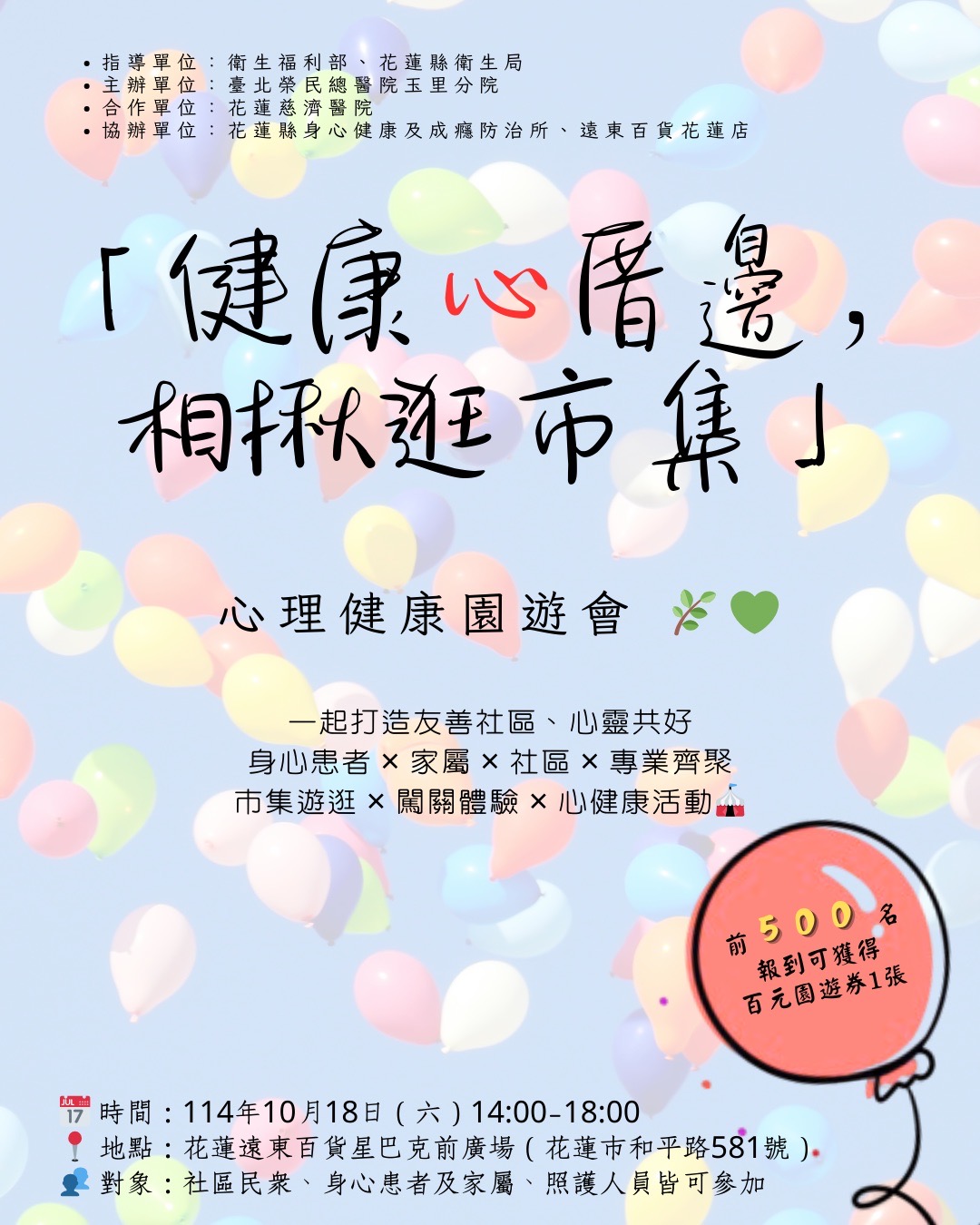 活動地點:花蓮市和平路581號(遠東百貨星巴克前建林廣場)